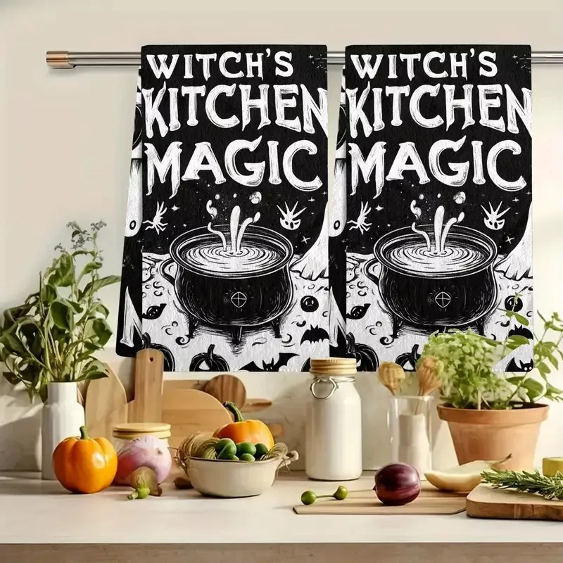 2 Pack Halloween Skeleton & Pumpkin Waffle Kitchen Towels