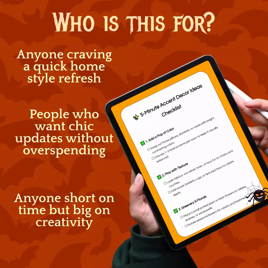 5-Minute Accent Decor Ideas Checklist | Quick Home Styling Guide | Instant Digital Download for Easy Room Makeovers