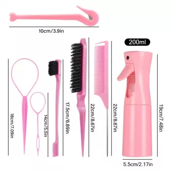 7pcs Professional Hair Styling & Braiding Tool Set with Spray Bottle