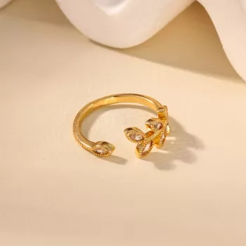 Crystal Geometric Vintage Leaf Ring - 18K Gold Plated Zircon Jewelry for Women