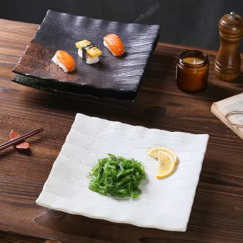 Japanese Ceramic Square Plate – 9 Inch Handmade Stone Pattern Tableware