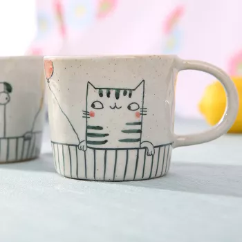 Korean Hand-Painted Cat & Dog Ceramic Mug – Cute Cartoon Coffee Cup