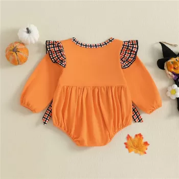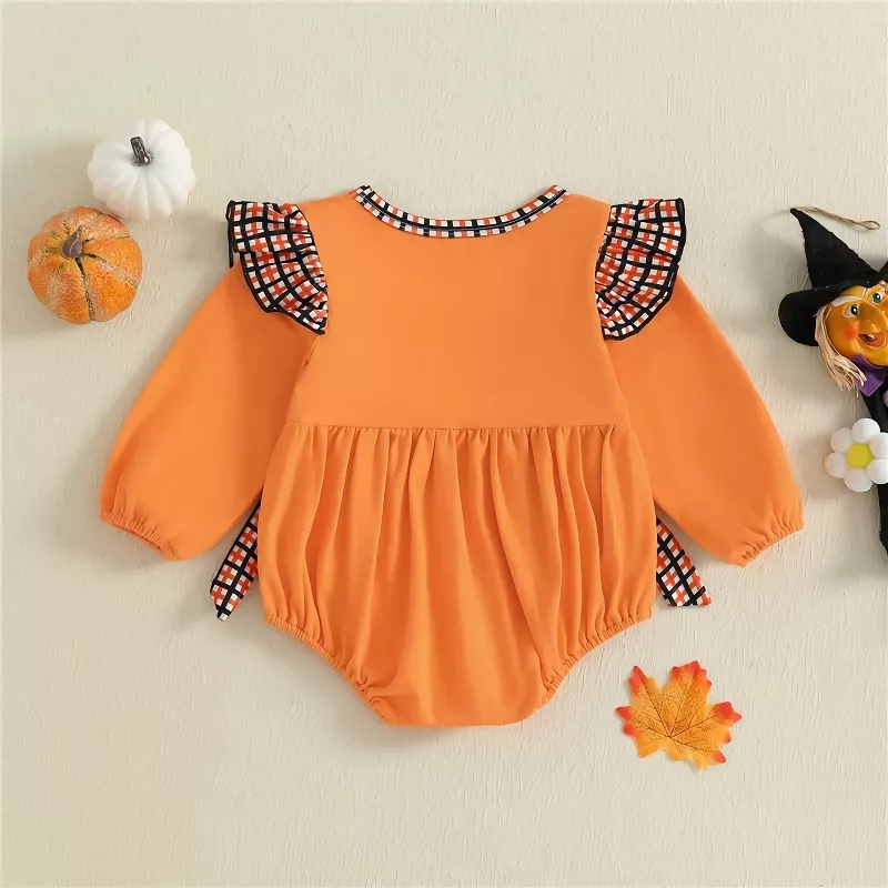 Newborn Baby Girl Halloween Bow Romper with Black Cat/Ghost Embroidery